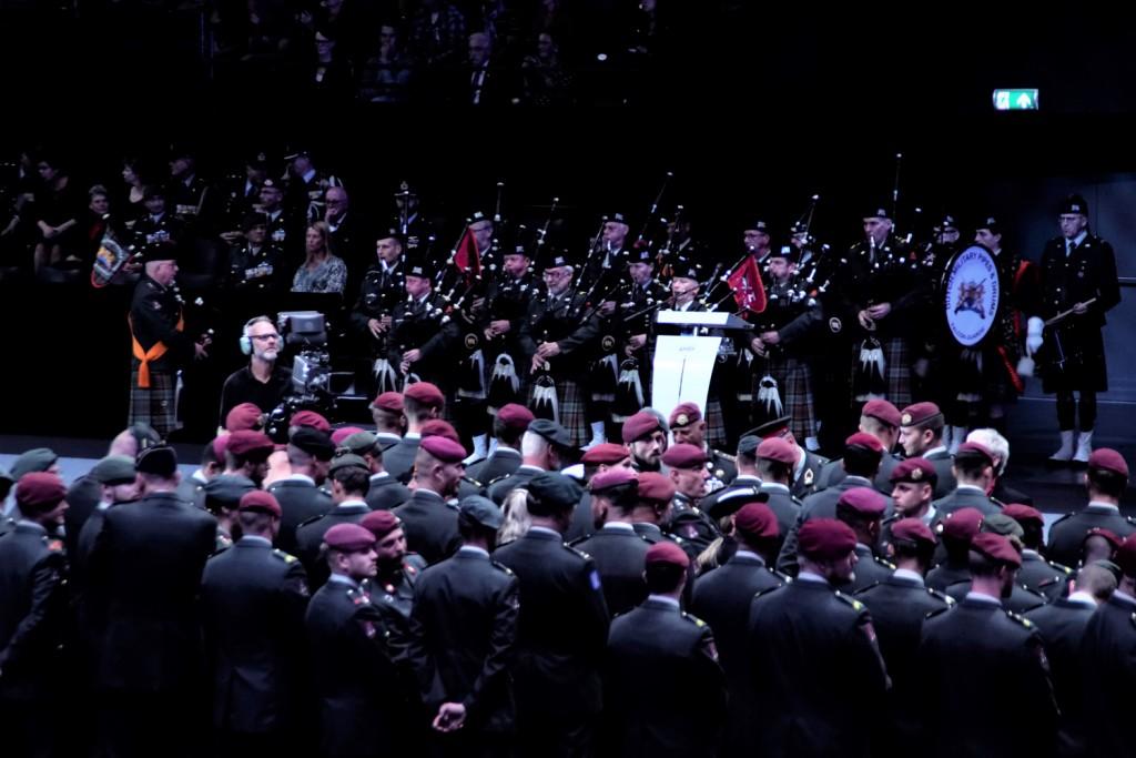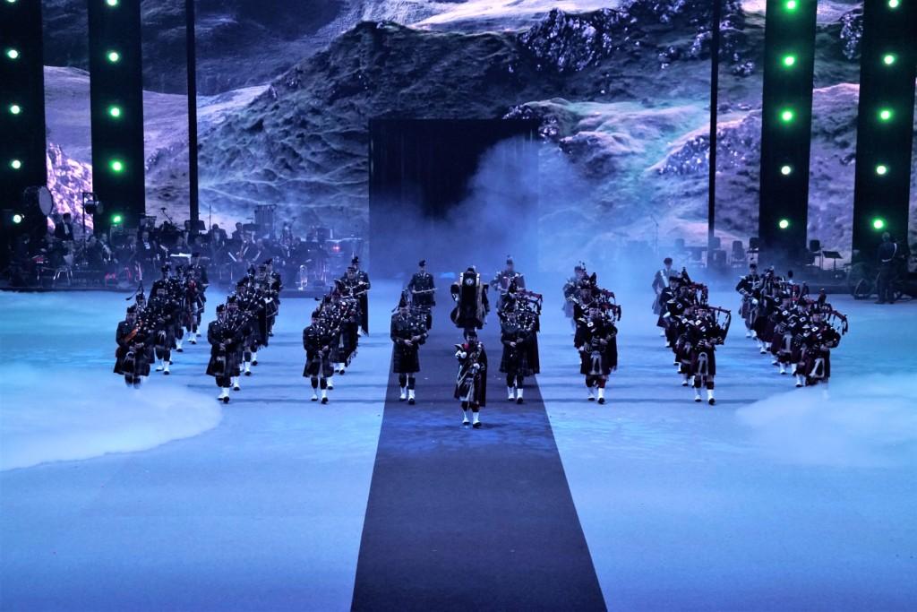 Voorafgaand aan de taptoe werd intensief voorgeoefend voor de 7-minuut durende show die bestond uit een opkomst van de Massed Pipes & Drums middels de tunes Bonnie Dundee en Cock o’ the North. Aansluitend voerde de dansers van het Highland Dance Team een Celtic Dance uit op de Strathspeys Molley Connell en Orange and Blue gevolgd door de Jig Flee the Glen. De bands en dansers marcheerden af op Scotland the Brave.