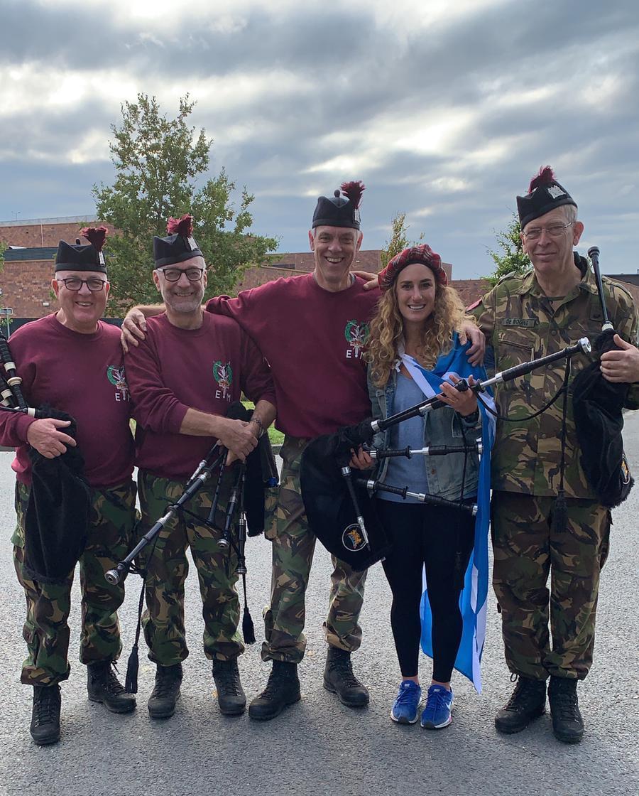 Peter, John H., Rob, Frank Jan en Gerard hebben de militairen bijgestaan met muziek tijdens hun sportactiviteiten. Er werd erg positief op gereageerd en tijdens de prijsuitreiking werden de Falcon Guards uitgebreid geroemd voor hun werkzaamheden tijdens de intochten in de Oranje kazerne en bedankt voor hun muzikale ondersteuning tijdens de Highland Games. De dank werd tastbaar gemaakt door een schild van hun eenheid.