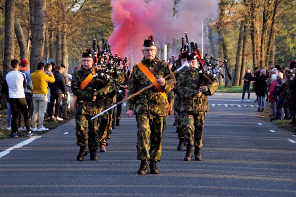 De aan deze ceremonie voorafgaande herdenking en de muzikale ondersteuning (spelen van de tune “Heroes of Oosterbeek”) op de ere begraafplaats in Oosterbeek werd dit maal verzorgd door kapitein bd J. Pit)