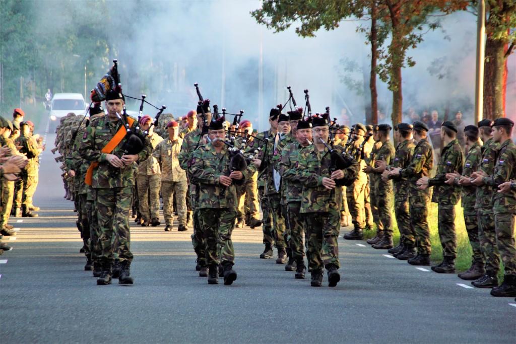 In de 15 jaar dat we als pipeband bestaan binnen de Nederlandse krijgsmacht, begeleiden we meerder keren per jaar een groep cursisten van de School 11 LMB tijdens hun laatste kilometers naar de uitreiking van de rode baret. Zo ook vrijdag 3 september. Dit werd voor velen een bijzondere Binnenkomst omdat in de organisatie binnen onze band we het een en ander anders moesten doen. Niet iedereen kan namelijk altijd aanwezig zijn om mee te spelen. En ook dit maal dienden we rekening te houden met het door ons zo genoemde "Paardenweitjeâ.