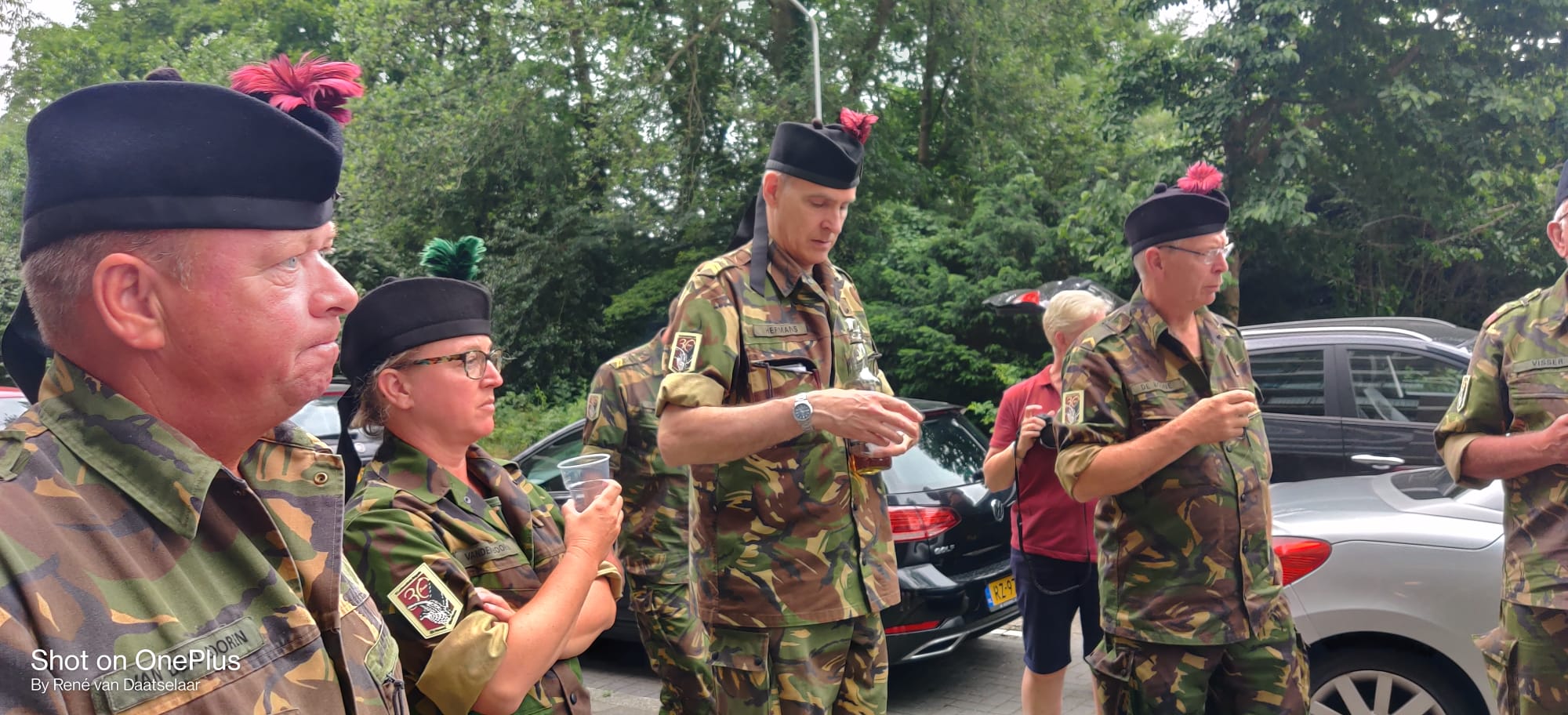Daar aangekomen konden we onze spullen in een container zetten zodat deze veilig waren tijdens onze afwezigheid. Na wat te hebben gegeten en gedronken zijn we gaan opstellen voor het defilé langs de koning, de betreffende ministers en andere hoogwaardigheid bekleders.