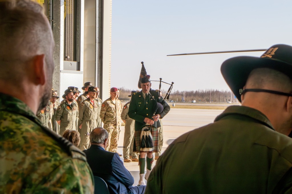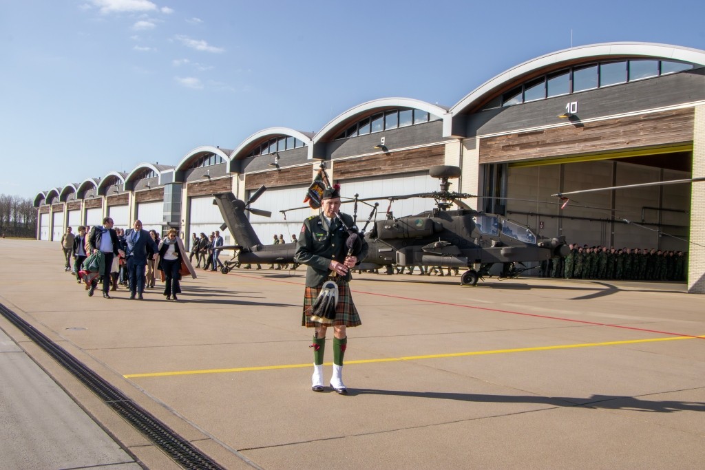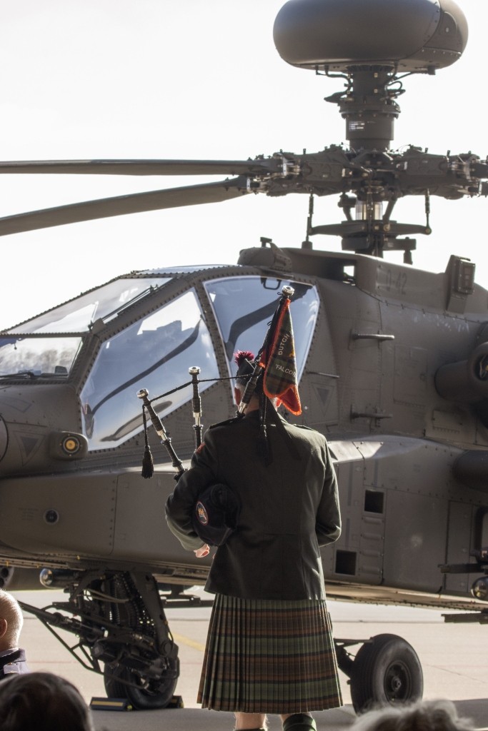 Tien jaar nadat onze toenmalige pipe major met een luchtmacht toestel naar Mali vloog, waar de Nederlandse defensie deel nam aan de VN-missie ter bescherming van vrede en veiligheid van dit Afrikaanse land, reed een piper van onze band naar de vliegbasis Gilze Rijen. Daar is het 301 Squadron van de Defensie Helikopter Commando gestationeerd.